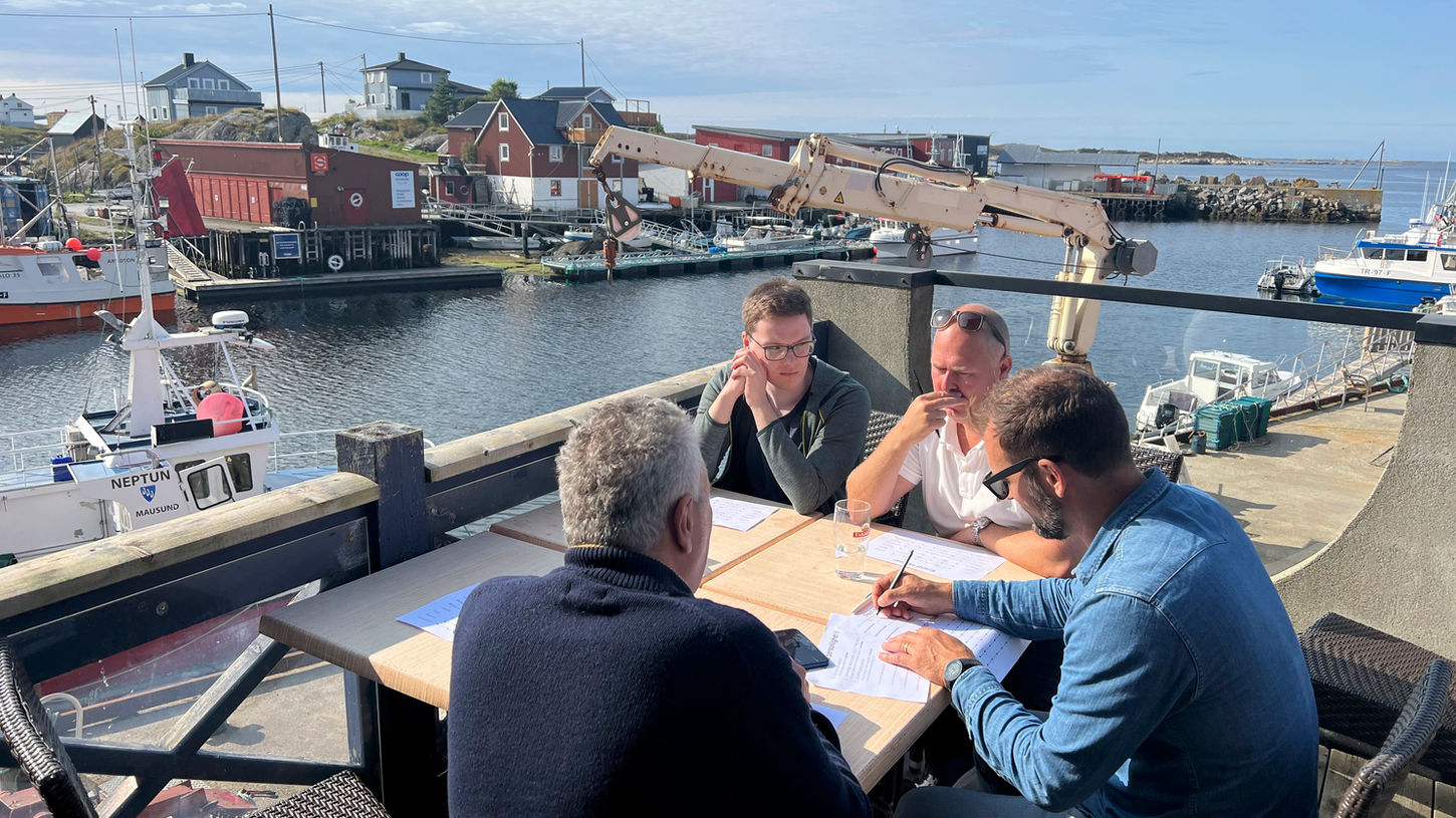 Kjeila ligger midt i havna og en stor kai med benker og bord hører til. Dette er en fin plass for hygge og grilling.